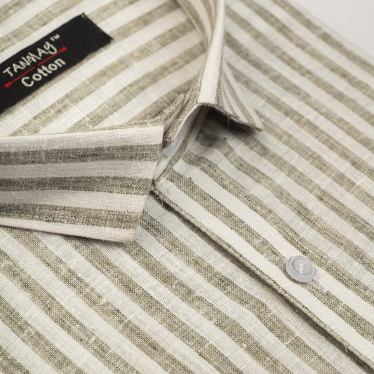 Tan Color Cotton Stripes Shirts For Men