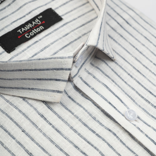 White Color Cotton Stripes Shirts For Men