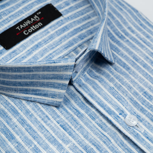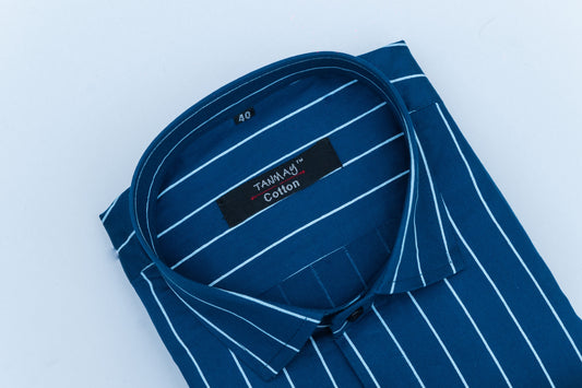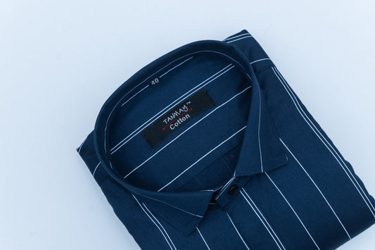 Navy Blue Color 100% Lining Cotton Shirt For Men's